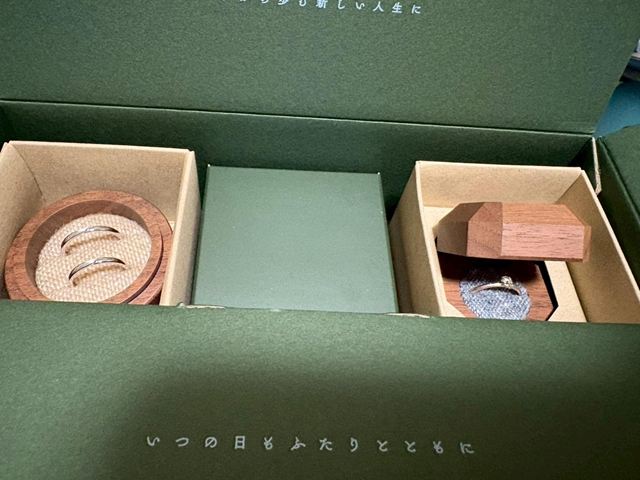 素材、アフターケアの事はそこまで考えず、自分たちが好きなものを選びました。ですが、アフターケアやサイズ直しも行ってくれるそうで、自分でできるケア方法や指輪の磨き方もしっかりレクチャーしてもらいました。